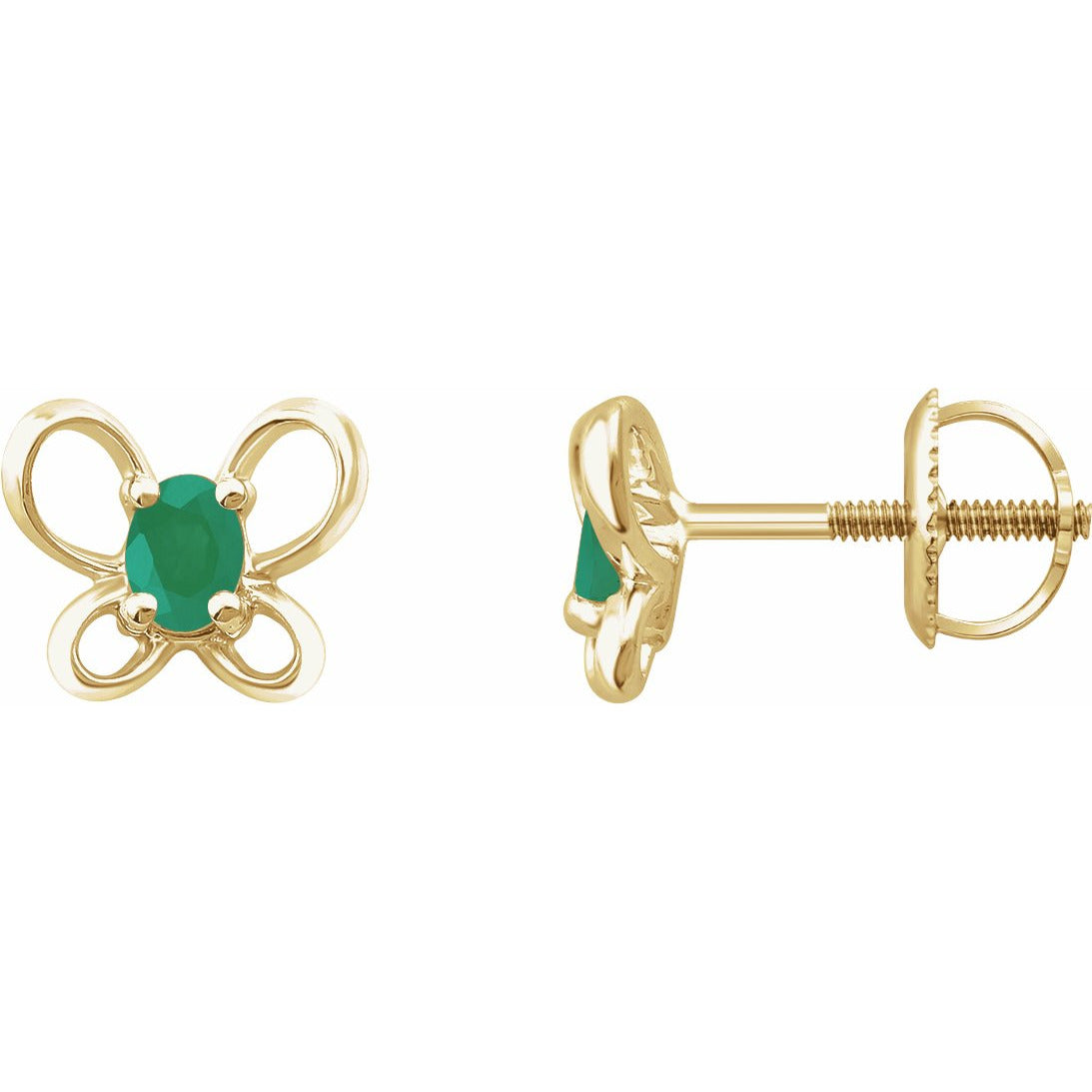 14K Yellow 4x3 mm Oval May Youth Butterfly Birthstone Earrings