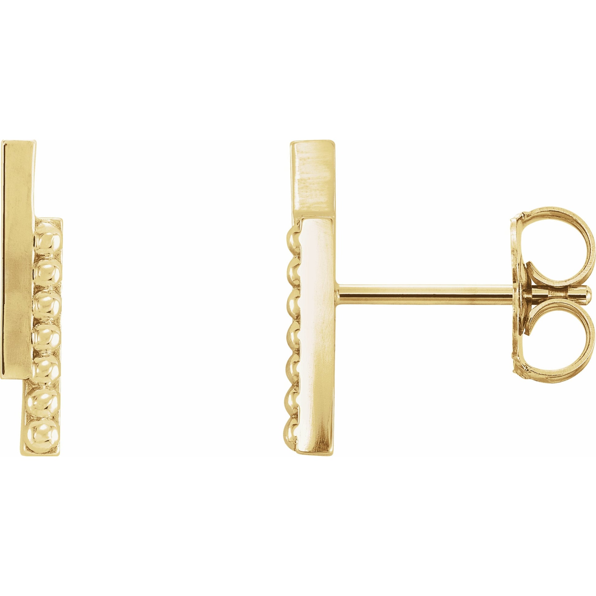14K Yellow Beaded Bar Earring