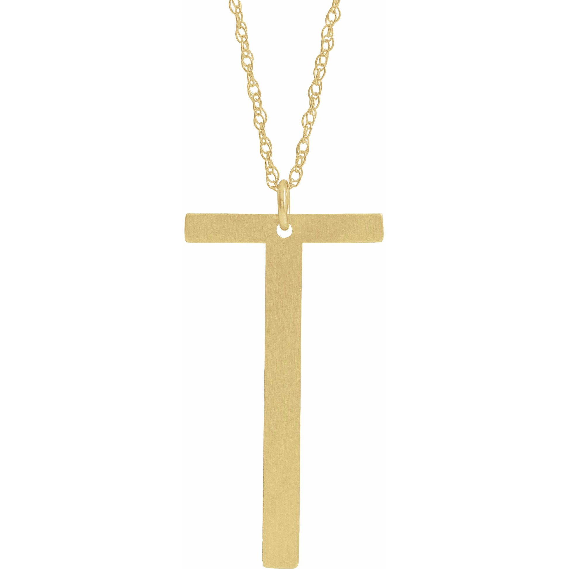 87091 / Necklace / 14K Yellow / T / 25 Mm / 16-18 In / Polished / Block Initial Necklace With Brush Finish