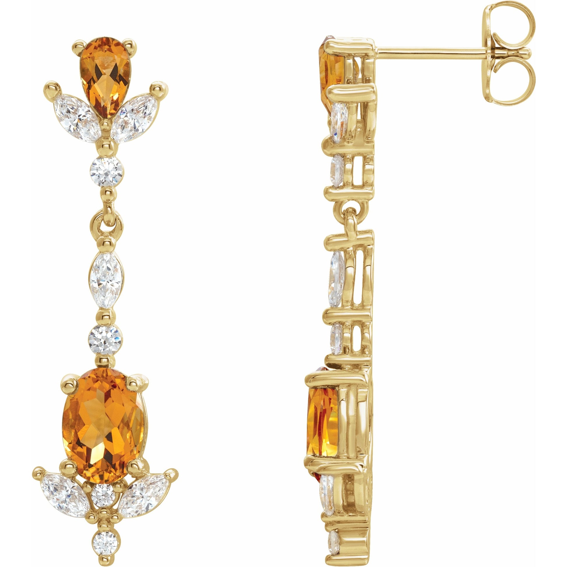 14K Yellow Citrine and 3/4 CTW Diamond Earrings