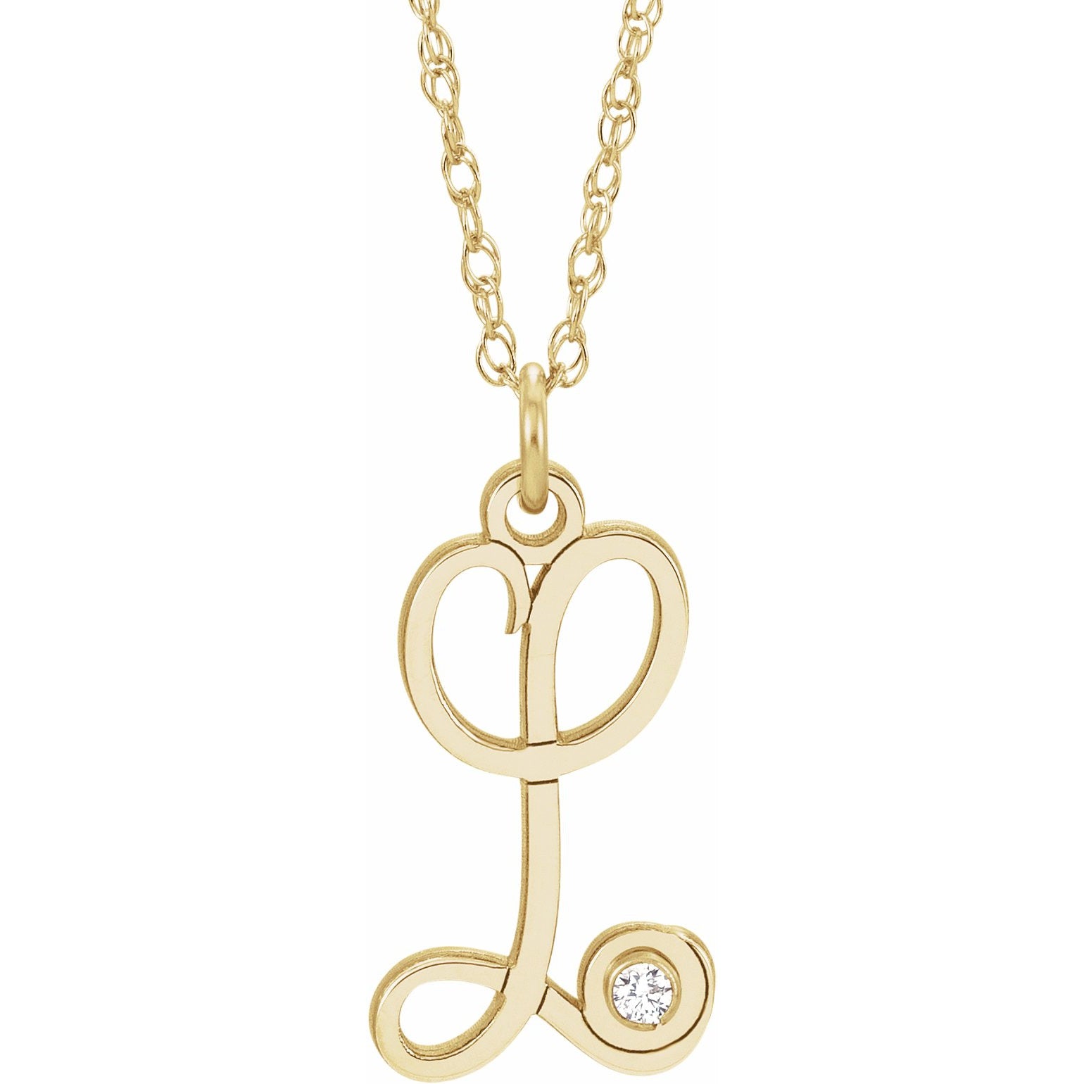 14K Yellow Gold-Plated .02 CT Diamond Script Initial L 16-18 Necklace