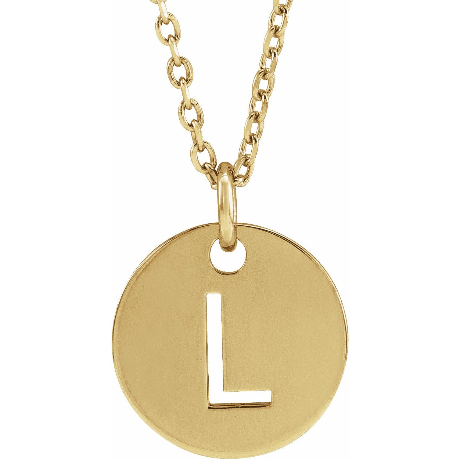 14K Yellow Initial L 10 mm Disc 16-18 Necklace