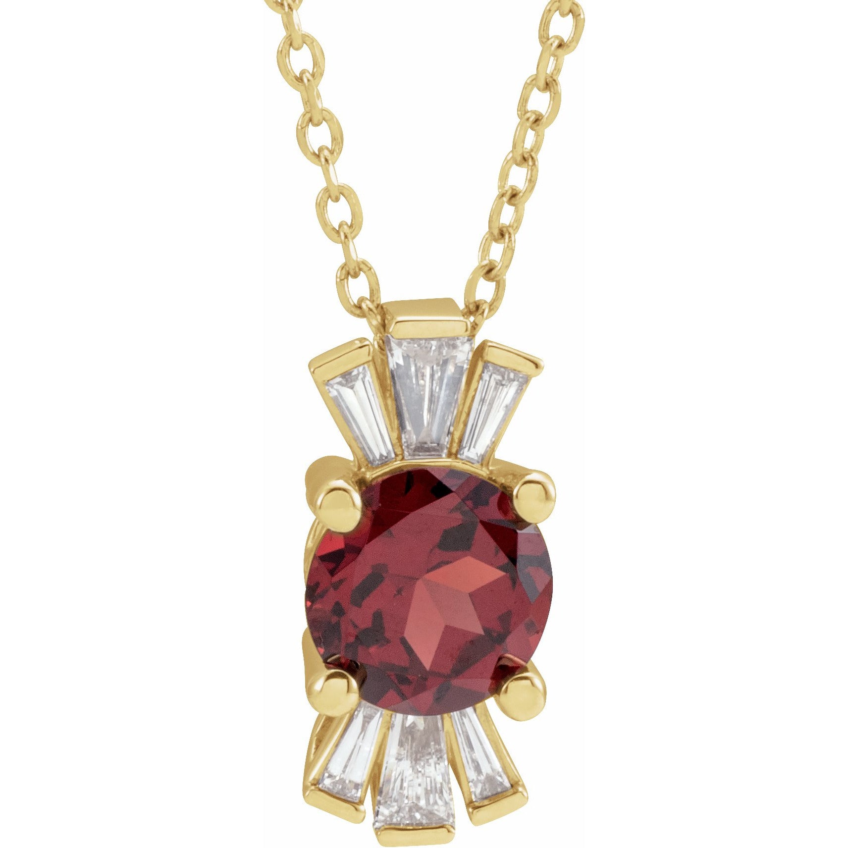 86964 / Necklace / Set / 14K Yellow / Garnet / Round / 6 Mm / Polished / Genuine Garnet And 1/6 Ctw Diamond Necklace