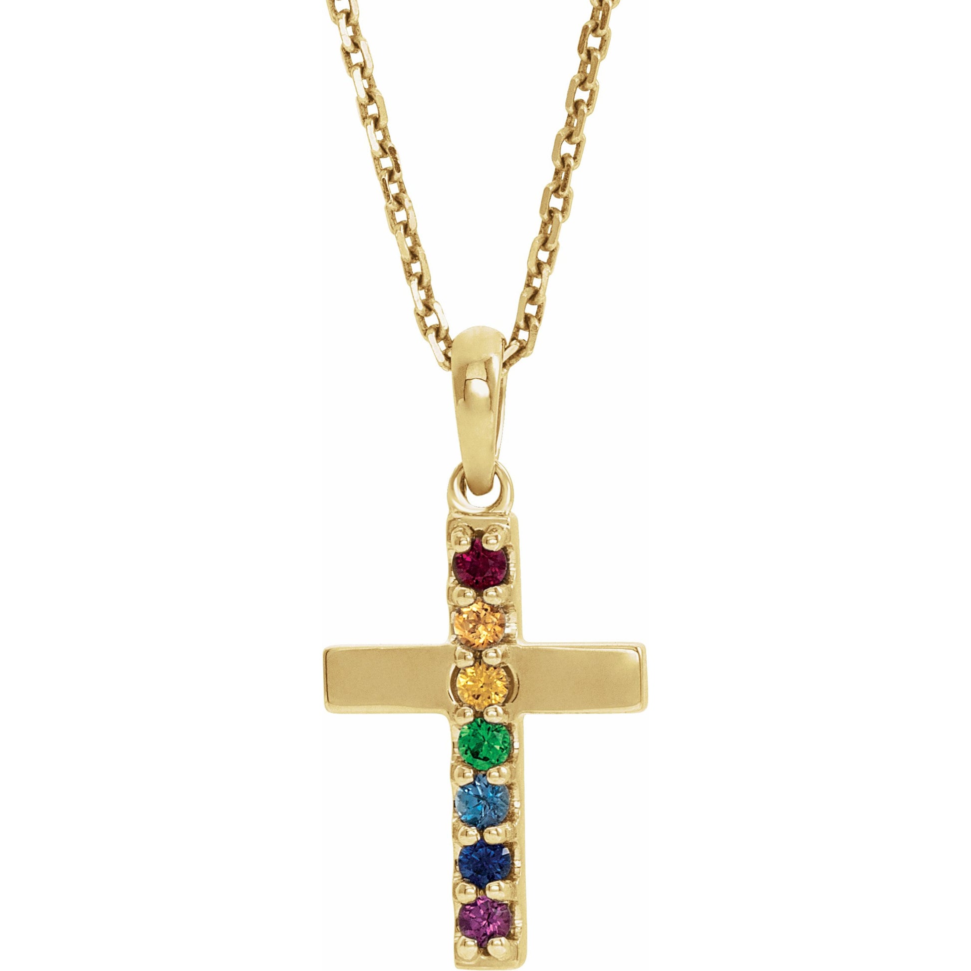 14K Yellow Multi-Gemstone Cross 16-18 Necklace