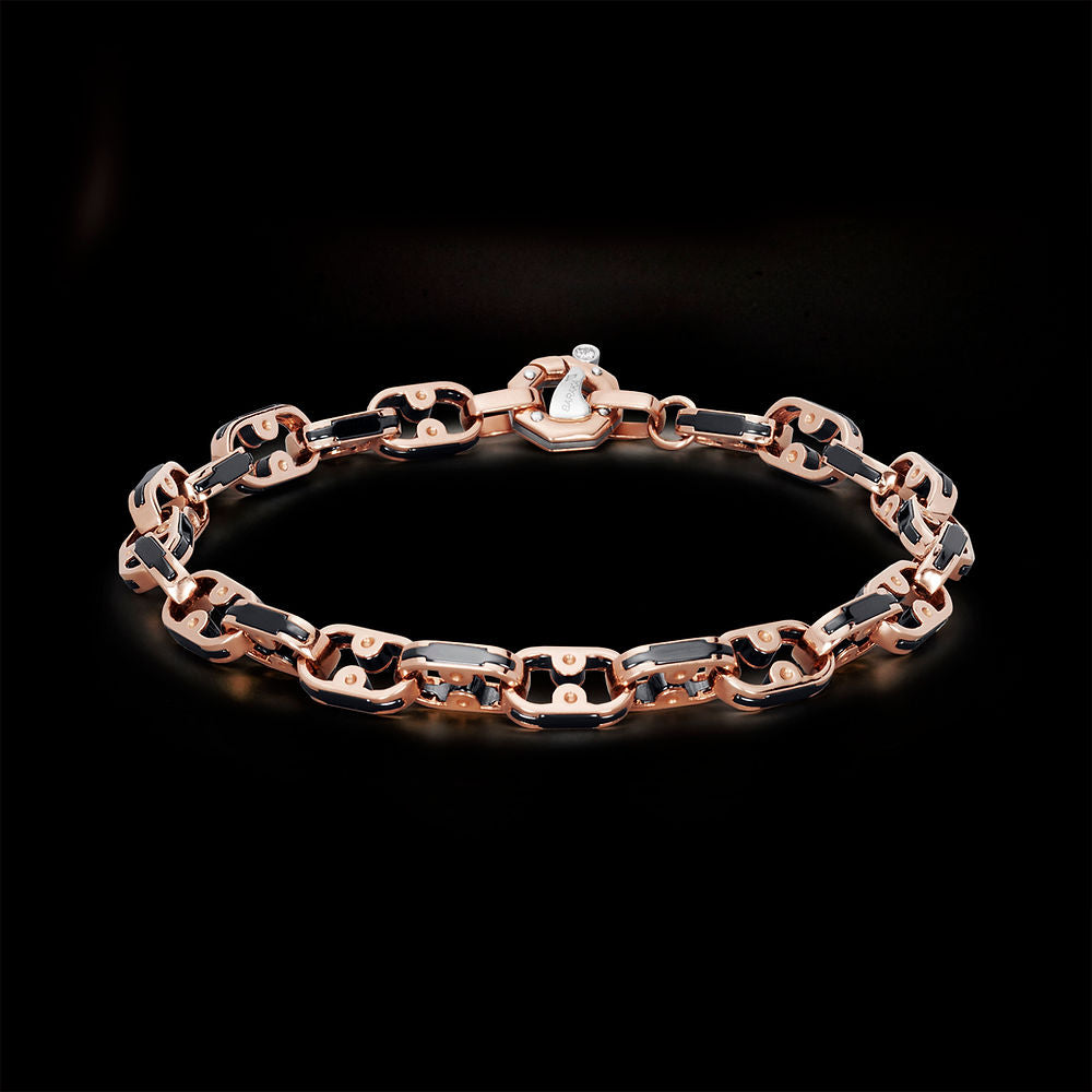 Bracelet in 750‰ Rose Gold and black high-tech Ceramic. Octagonal clasp with Diamond 0.02 Cts.
