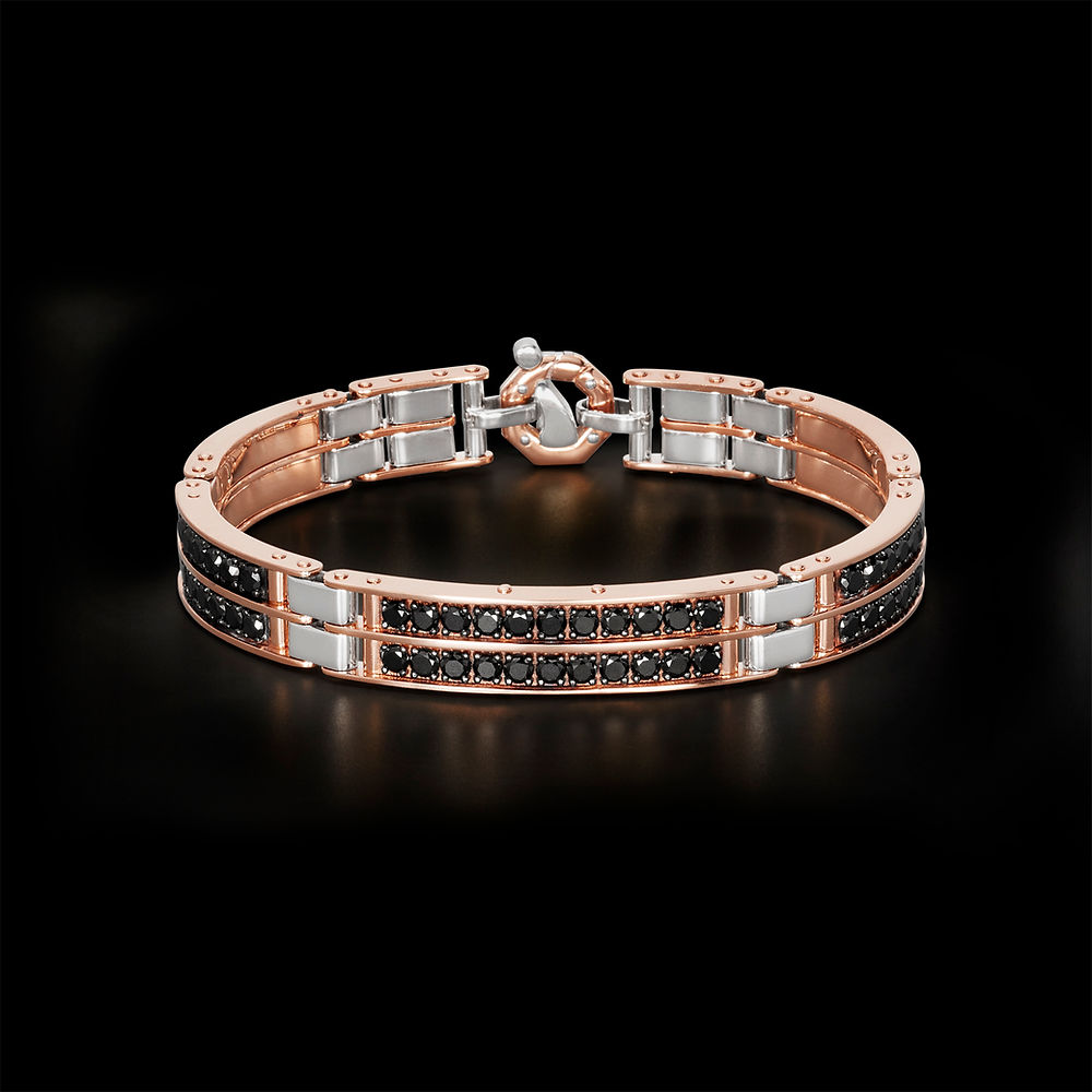 Bracelet in white and rose Gold 750‰. Black diamonds 4.95 Cts. Octagonal clasp with white Diamond 0.02 Cts.