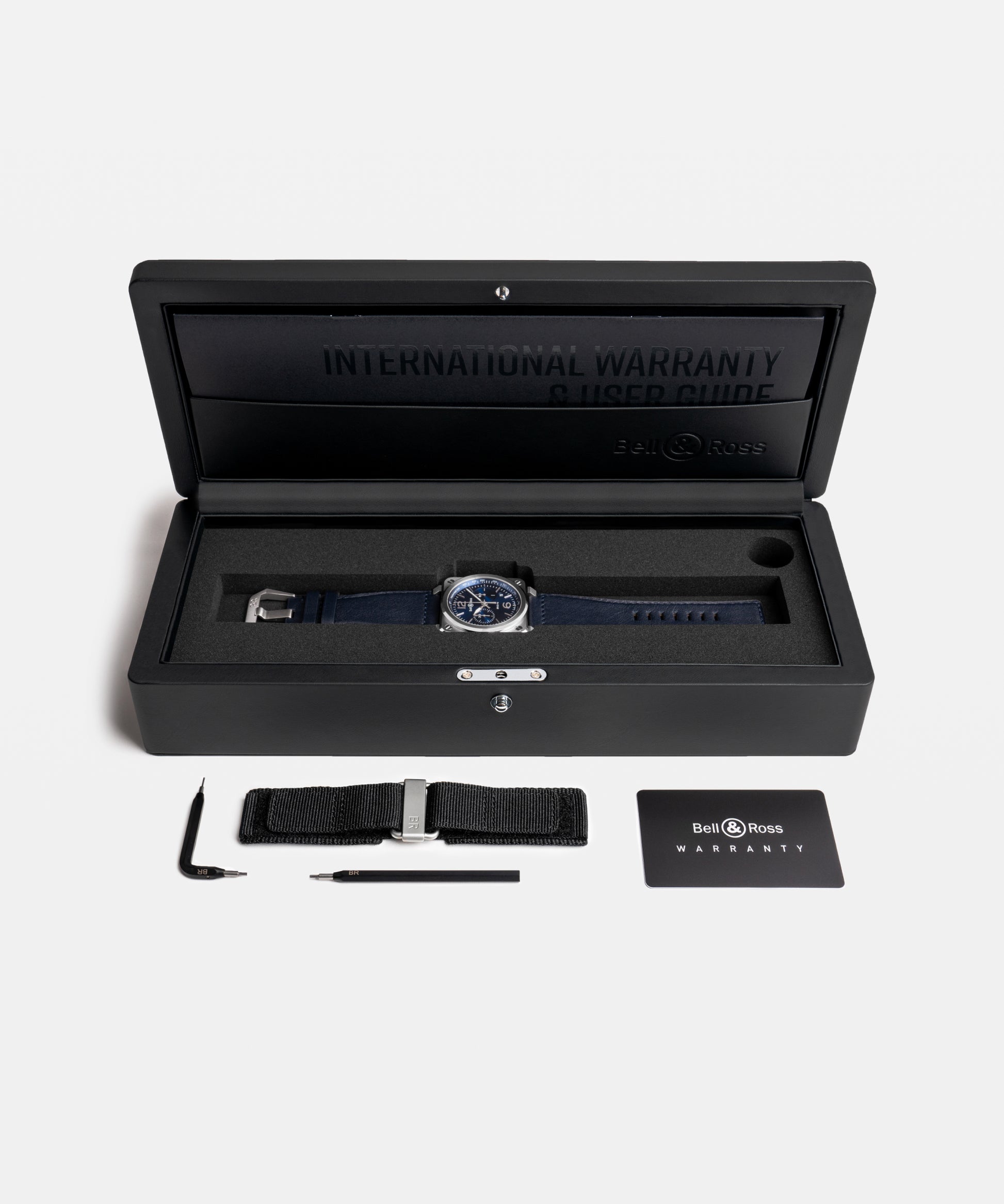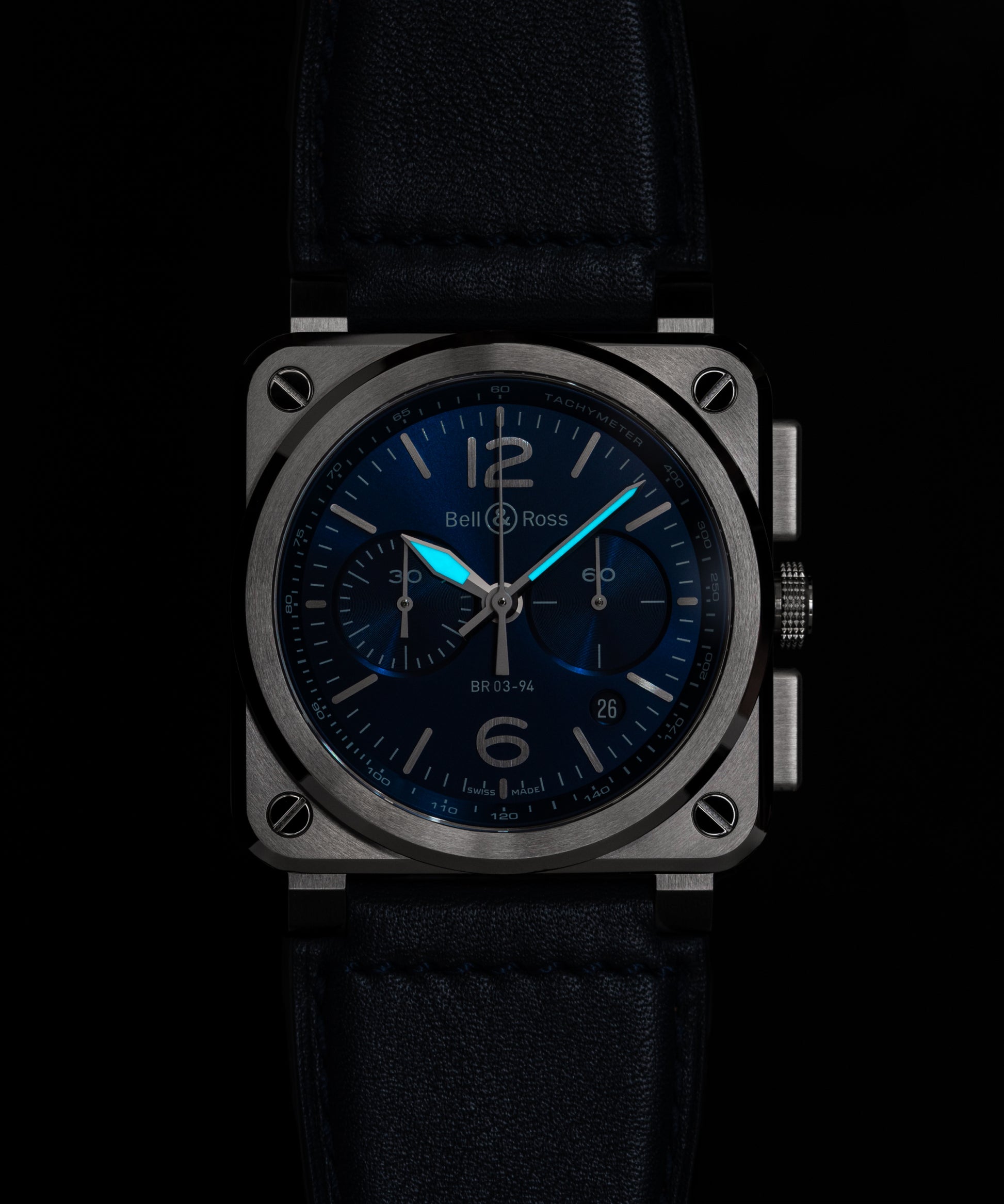 Blue. Metal applique numerals and indices. Metal skeleton Super-LumiNova®-filled hour and minute hands.