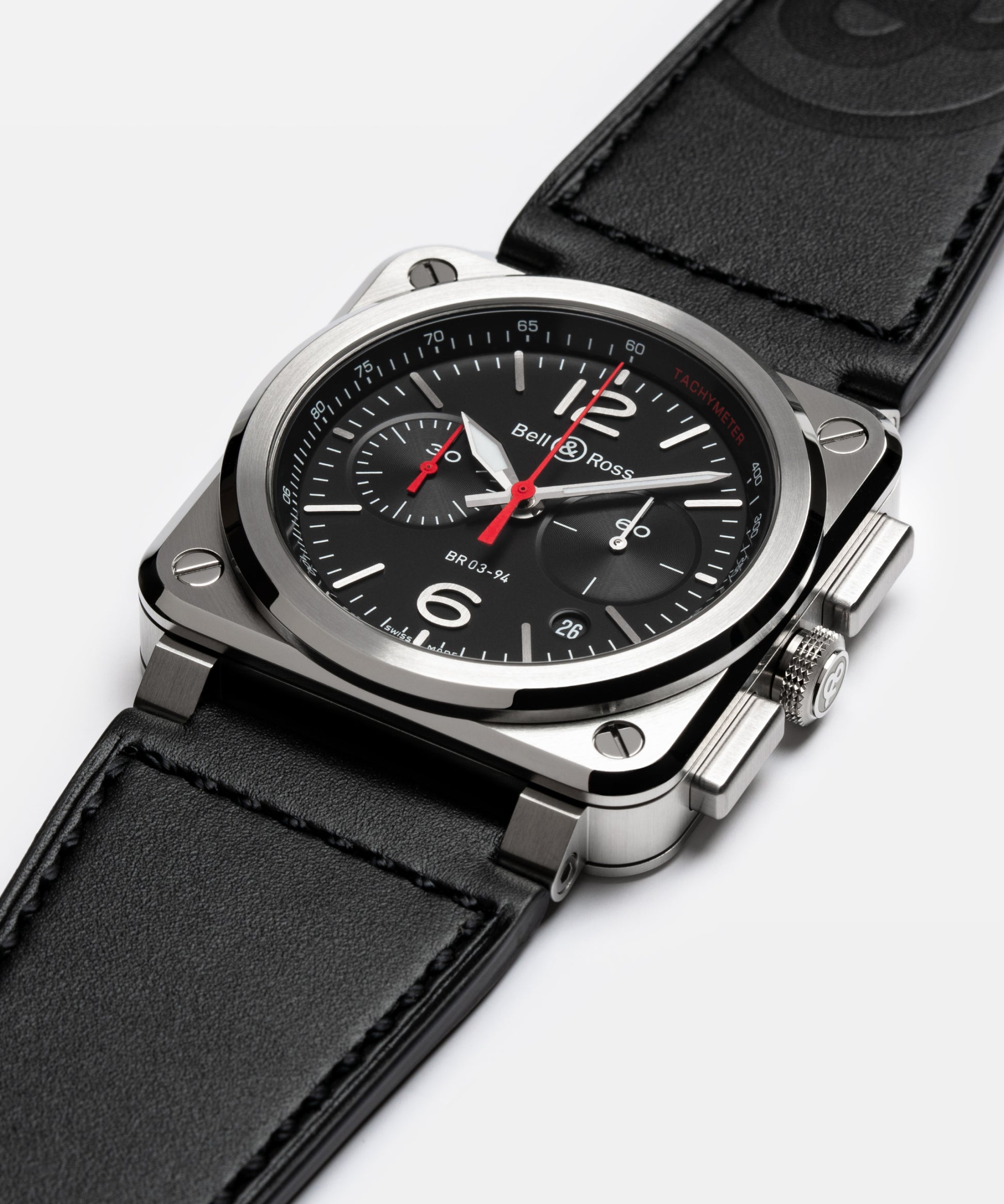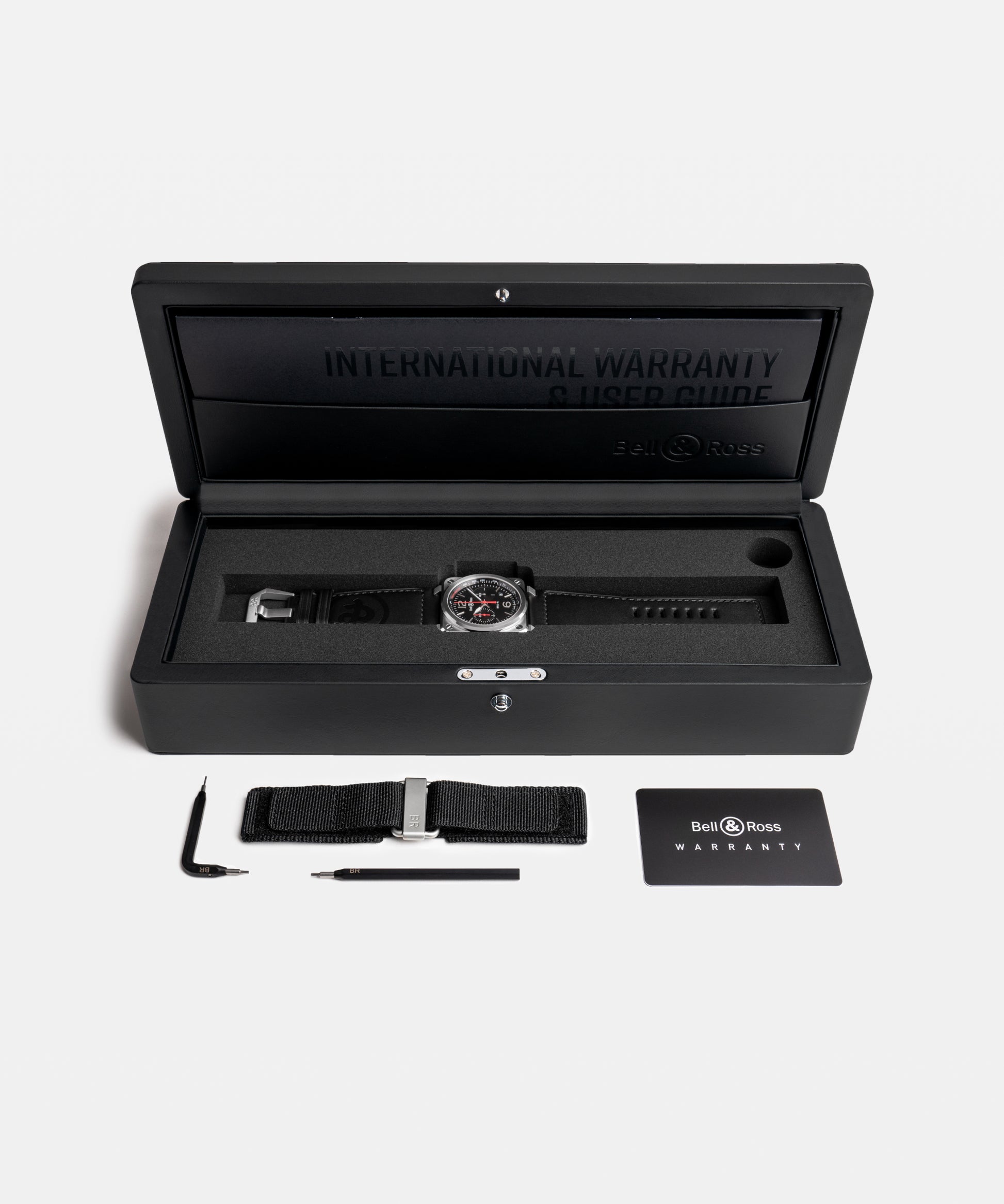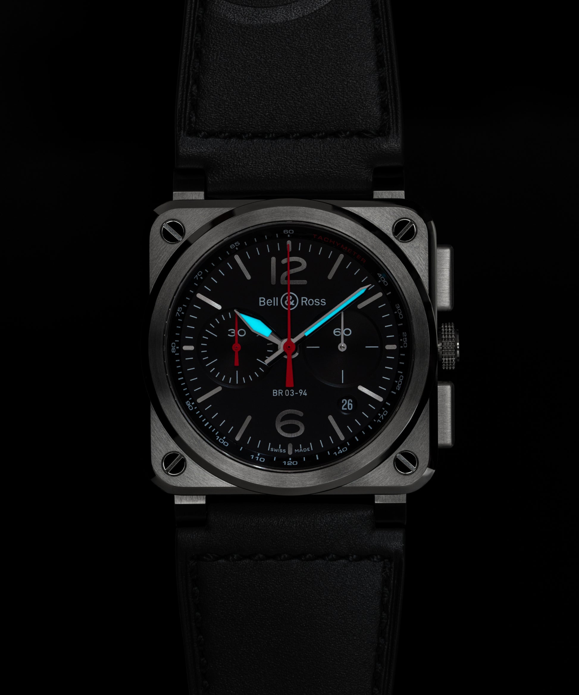Black. Metal applique numerals and indices. Metal skeleton Super-LumiNova®-filled hour and minute hands.