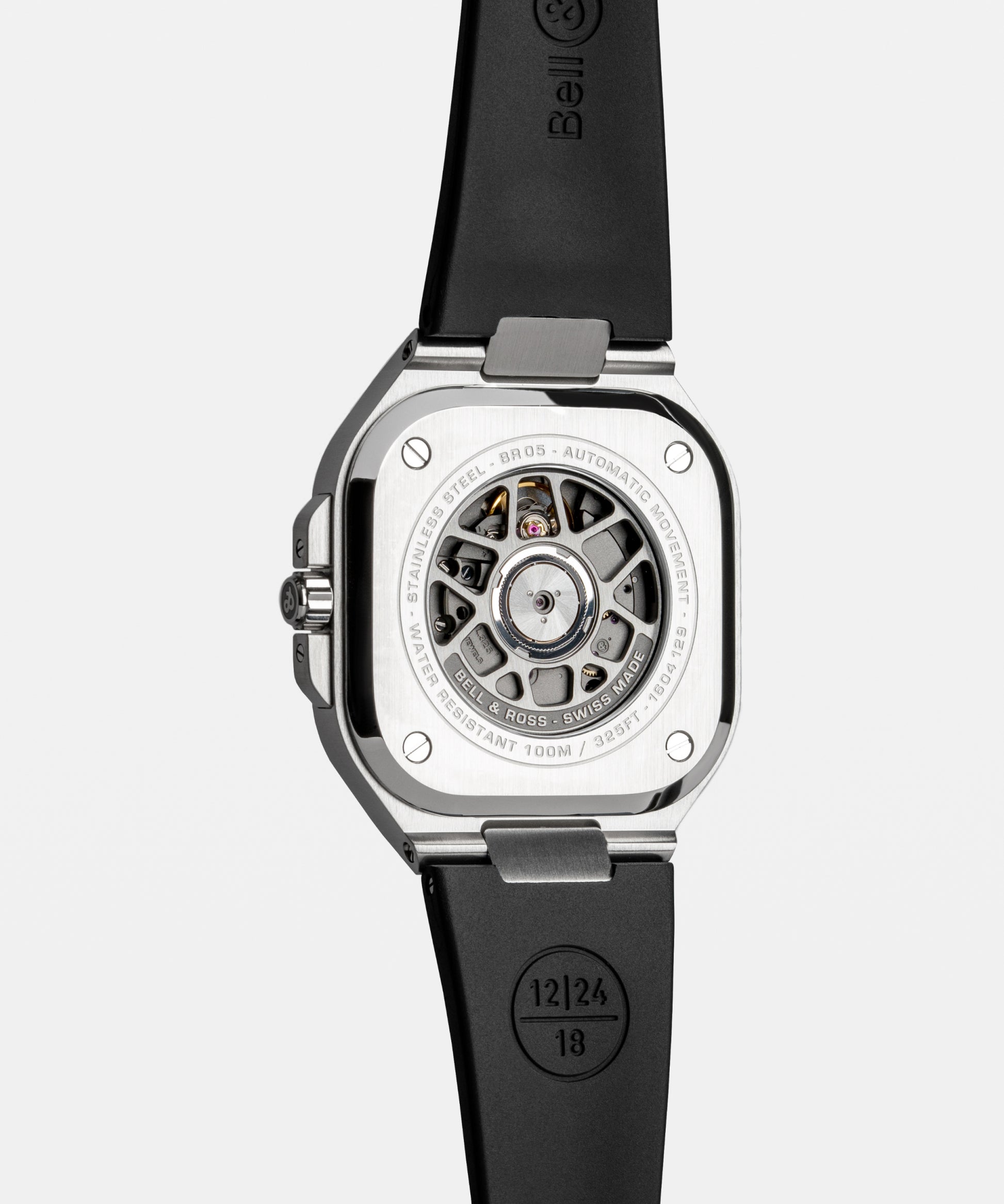 41 mm in width. 11.07 mm thick. Satin-finished and polished steel. Rhodium-plated satin-finished and silvered semimatt two-colour flange, with 24-hour scale. Screw-down crown. Crown guard. Sapphire case-back with 360° oscillating weight.