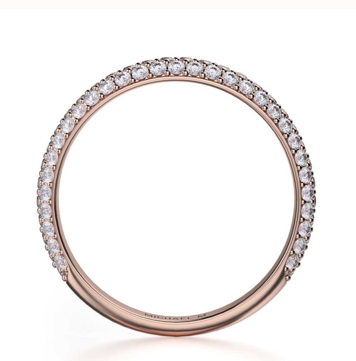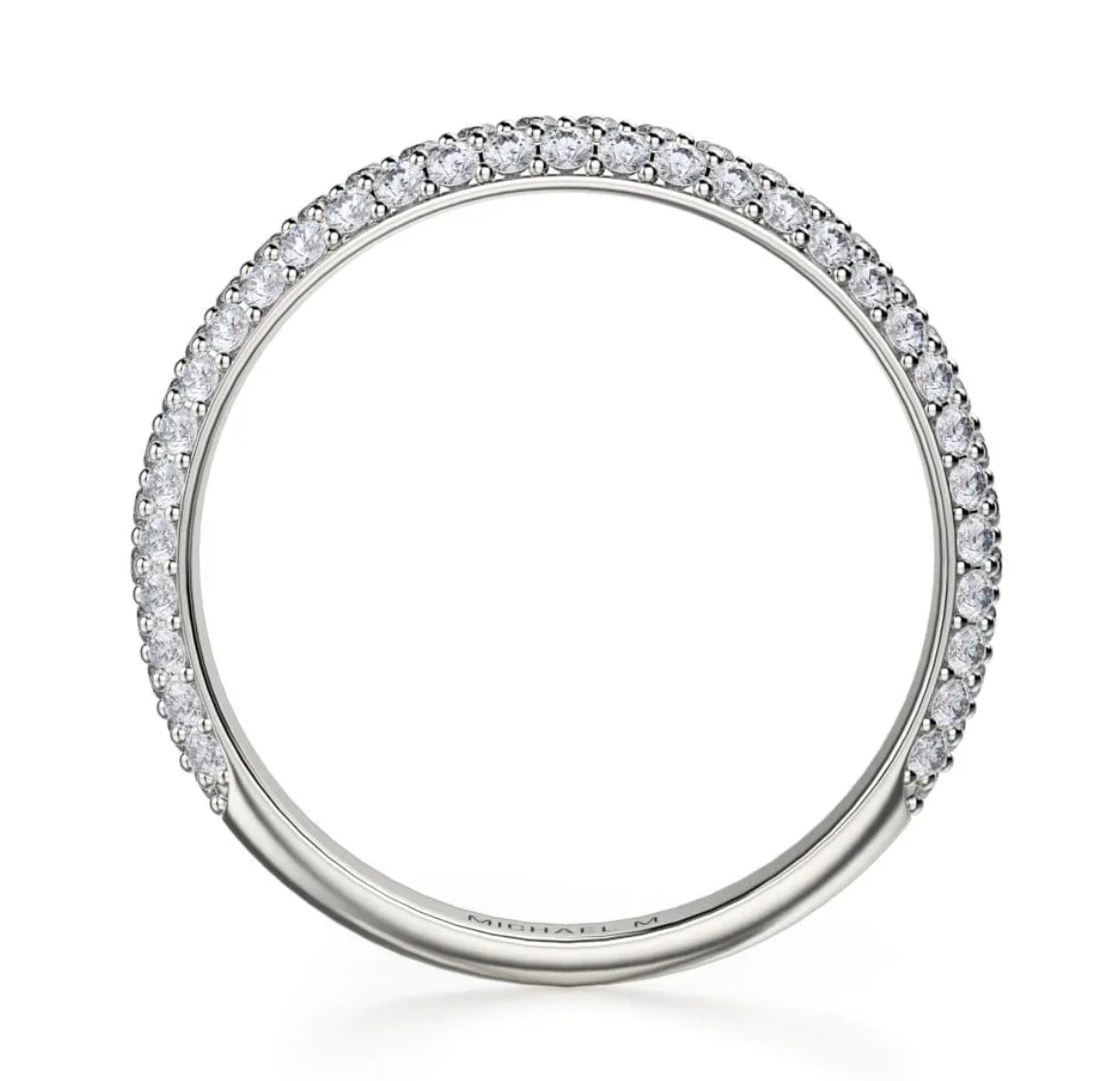 This exquisite wedding band features rows of sparkling round-shaped diamonds securely set in prongs, making it the perfect symbol of everlasting love and commitment. With diamonds covering the surface of the band, it's sure to catch the eye and make a statement.