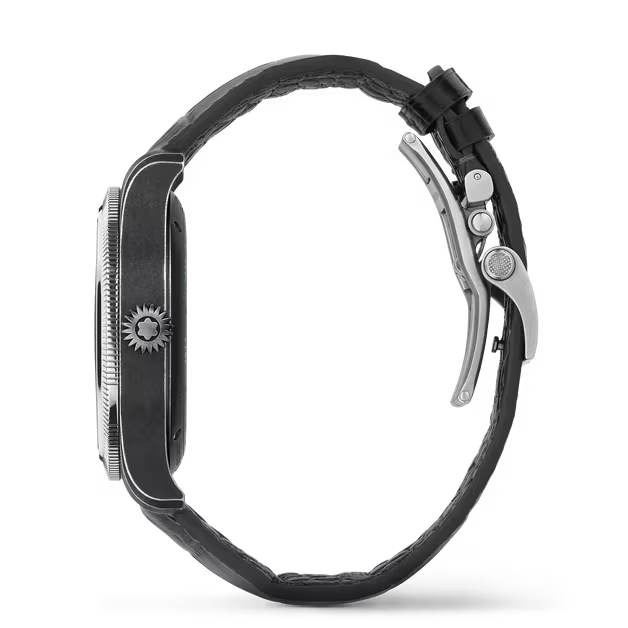 The Montblanc 1858 Unveiled Timekeeper Minerva Limited Edition rethinks the expected. Instead of using traditional pushers, the chronograph is activated via the fluted bezel. Just one click of the 750/1000 (18 karats) white gold fluted bezel will start the chronograph. A second click will stop it, and a third click will reset it, transforming the chronograph as we know it. The timepiece comes in a 42.5 mm distressed steel case and is fitted with a grey dial and a grey interchangeable calf leather strap with alligator print. It is powered by the hand-finished manually wound Manufacture MB M13.21 calibre and is limited to 100 pieces.