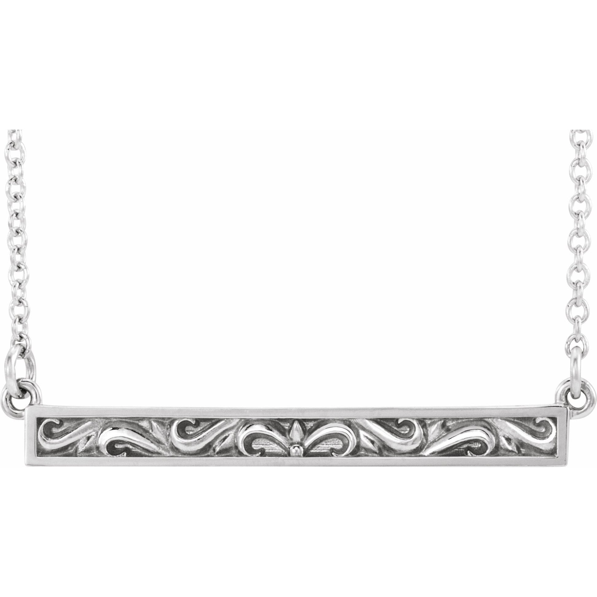 86703 / Necklace / Platinum / Polished / Scroll Bar Necklace